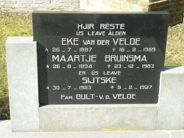 Eke married Maartje Sipkes BRUINSMA on 4 Aug 1921 in Menaldumadeel. Maartje was born 27 Aug 1894 in Marssum. She died 23 Dec 1983.
